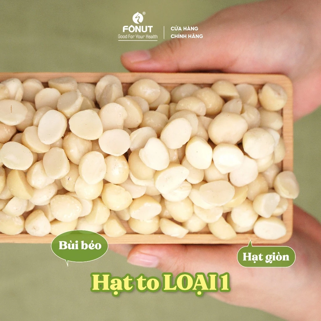 Hạt Macca Úc vỡ đôi Fonut được tuyển chọn từ những hạt macca loại 1 chất lượng cao, nhập khẩu chính ngạch từ Úc. Sau quá trình tách vỏ, những nhân macca vỡ đôi vẫn giữ trọn vị béo bùi đặc trưng, giòn rụm và giàu dinh dưỡng – là lựa chọn lý tưởng cho những ai yêu thích món ăn vặt lành mạnh, tiện lợi.